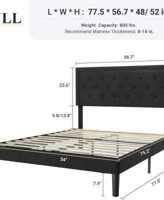 • Sale! Allewie Full Size Upholstered Platform Bed Frame with Adjustable Headboard, Button Tufted, Wood Slat Support, Easy Assembly, Black