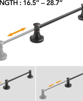 • BESy Adjustable Bronze 16 to 28 Inch Bath Towel Bar Rack for Bathroom Towel Holder, Wall Mounted Towel Bar Rod Hanger Bathroom Hardware Accessories Hotel Style, Stainless Steel, Oil Rubbed Bronze