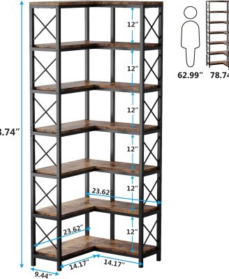 • Tribesigns 7-Shelf Corner Bookshelf,Large Modern Corner Bookcase, 7-Tier Tall Corner Shelf Storage Display Rack with Metal Frame for Living Room Home Office (Rustic Brown)